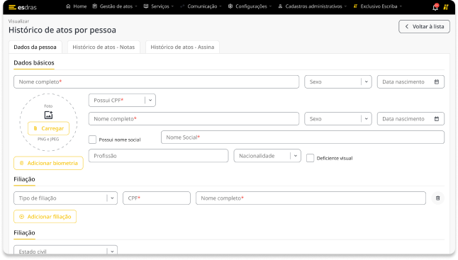 Desenvolvido para atender o setor de escrituras, procurações, substabelecimentos, testamento e emissão de certidões dos Tabelionatos de Notas.
